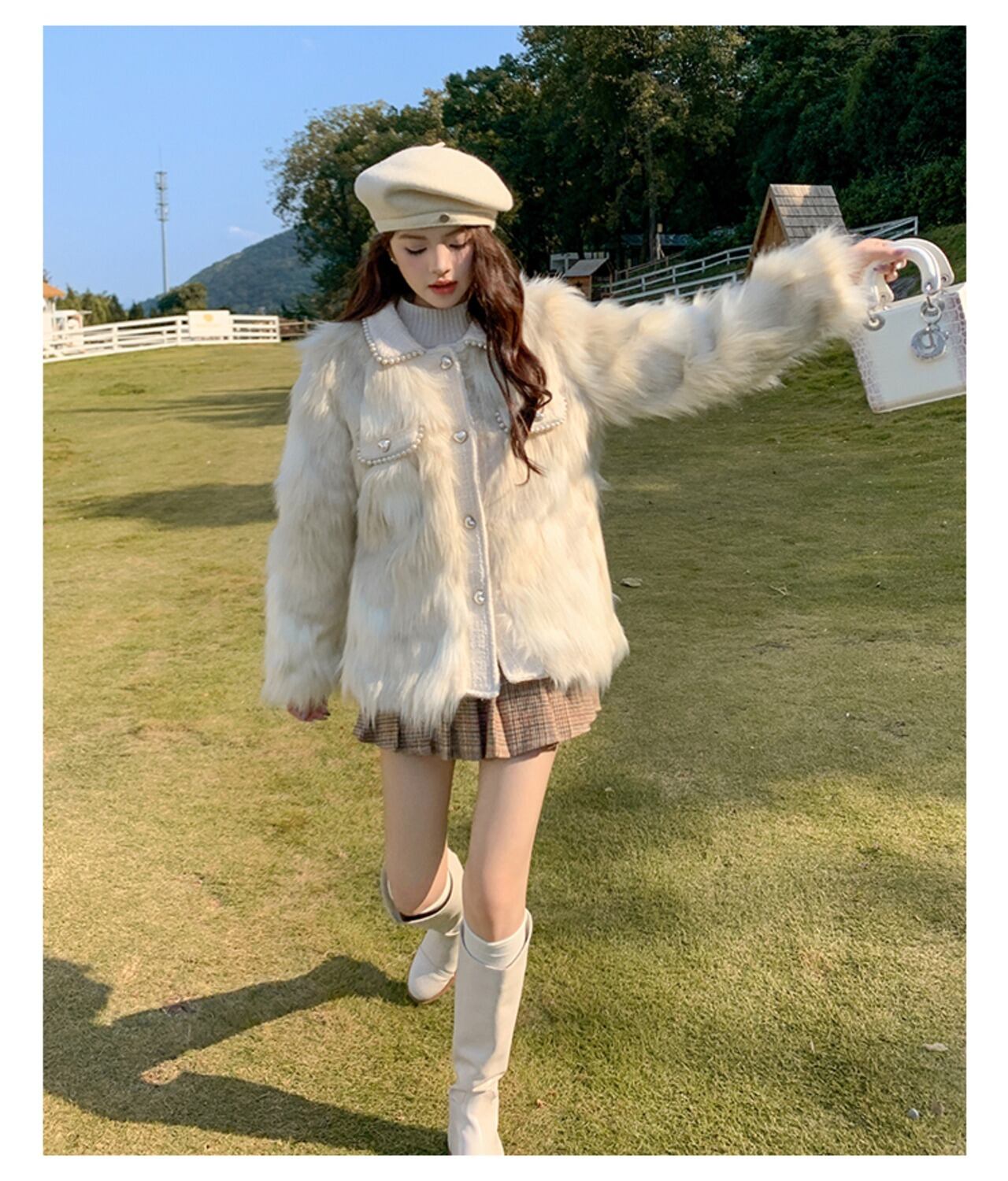 ツイードファージャケット ハートボタン ツイードジャケット エコファー ファージャケット ツイード ファー. ジャケット コート アウター レディース 10代 20代 30代 デート お出掛け. かわいい 韓国コーデ a5144