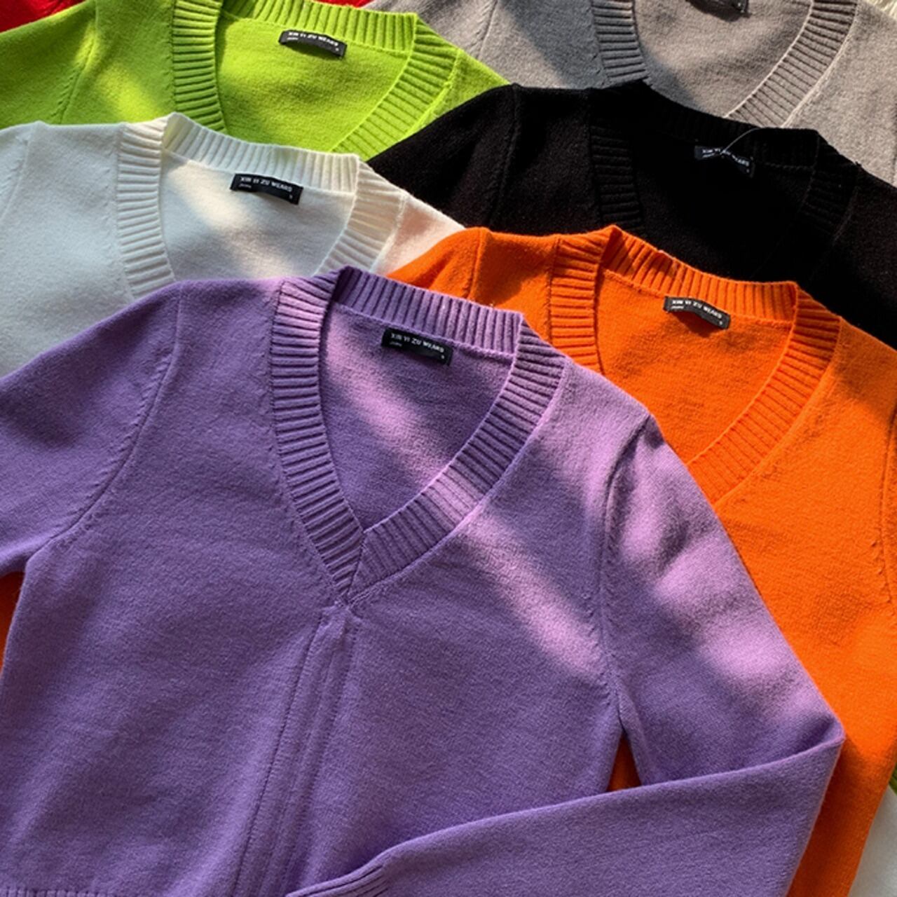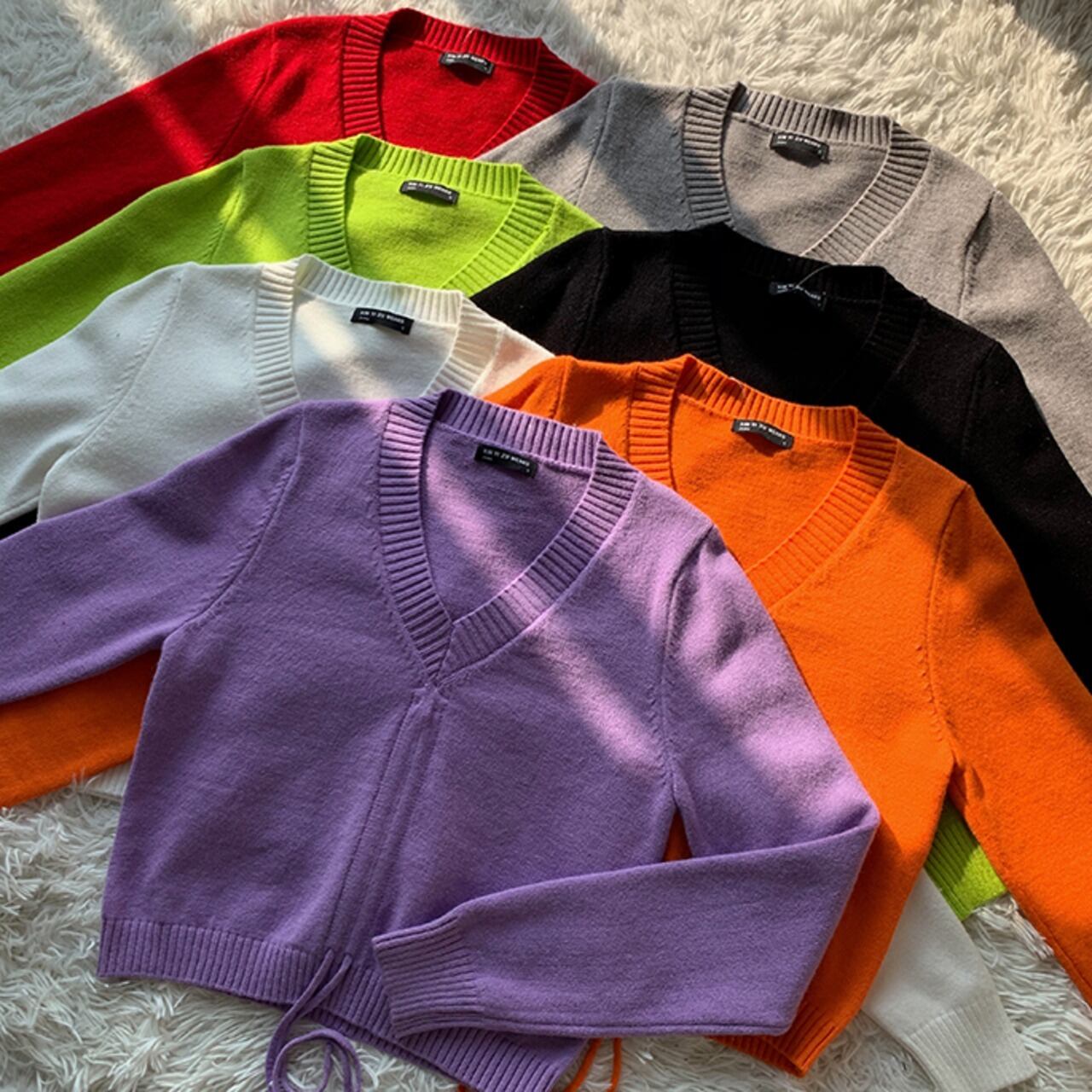 Vネックドローストリングニット ニット セーター 長袖 Vネック ドローストリング レディース トップス おしゃれ きれいめ 上品 シンプル 無地 単色 ソリッドカラー 7カラー C573