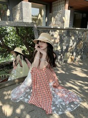 ギンガムチェックレースワンピース. ギンガムチェックワンピース ギンガムチェック レースワンピース キャミソールワンピース ワンピース ドレス サマードレス レディース バケーション 旅行 海 プール 海外 C643