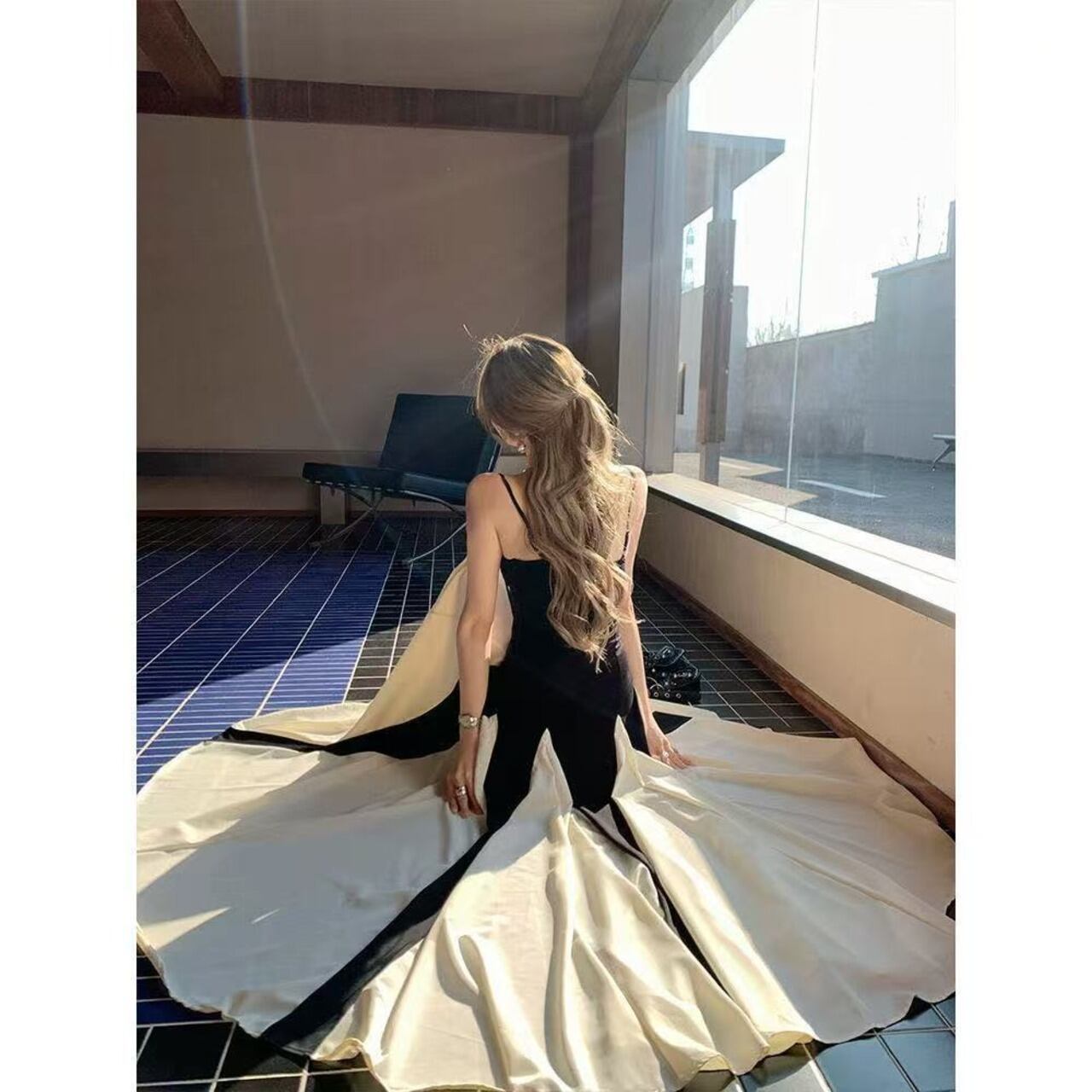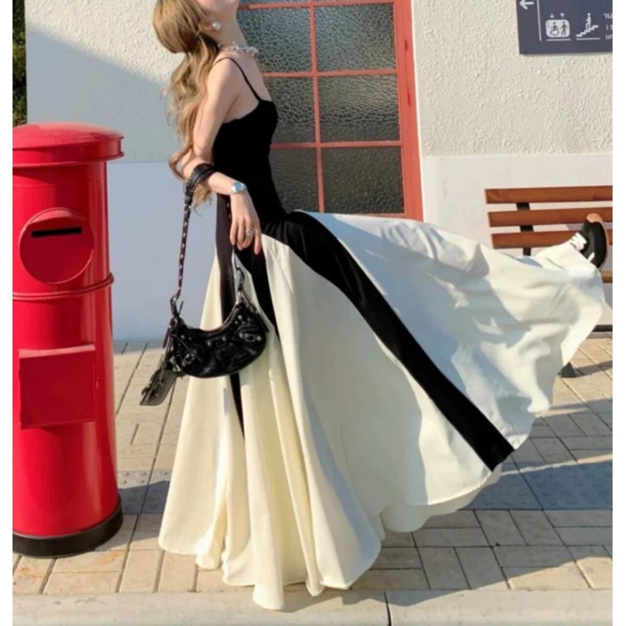 バイカラープリーツワンピース キャミソールワンピース お呼ばれ 旅行 サマードレス レディースワンピース ロング丈 Aライン 大人シルエット フィット ワンピース ドレス レディース バケーション おしゃれ こなれ感 ラフ ガーリー C659