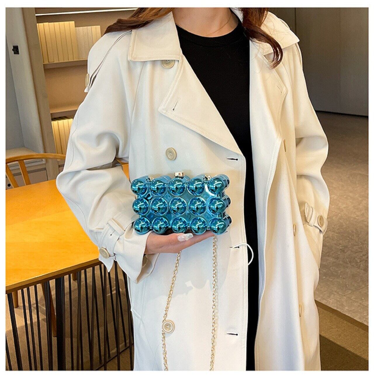 華やかなデザインで、おしゃれなシーンを演出するバブルアクリルクラッチハンドバッグ!