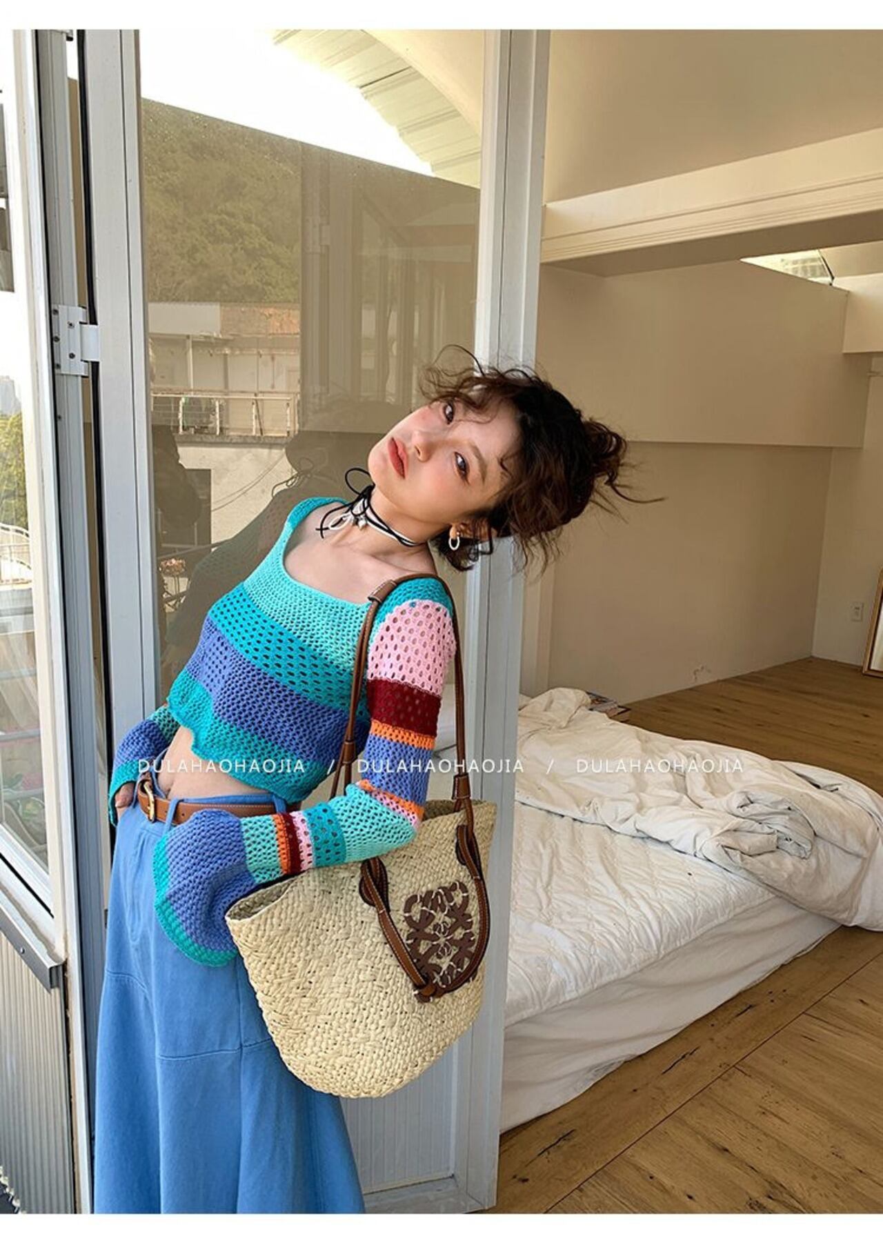 レインボークロップドニット