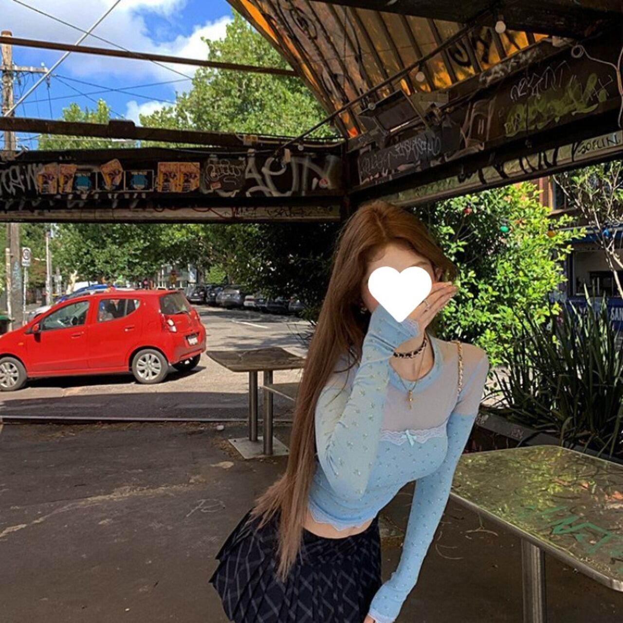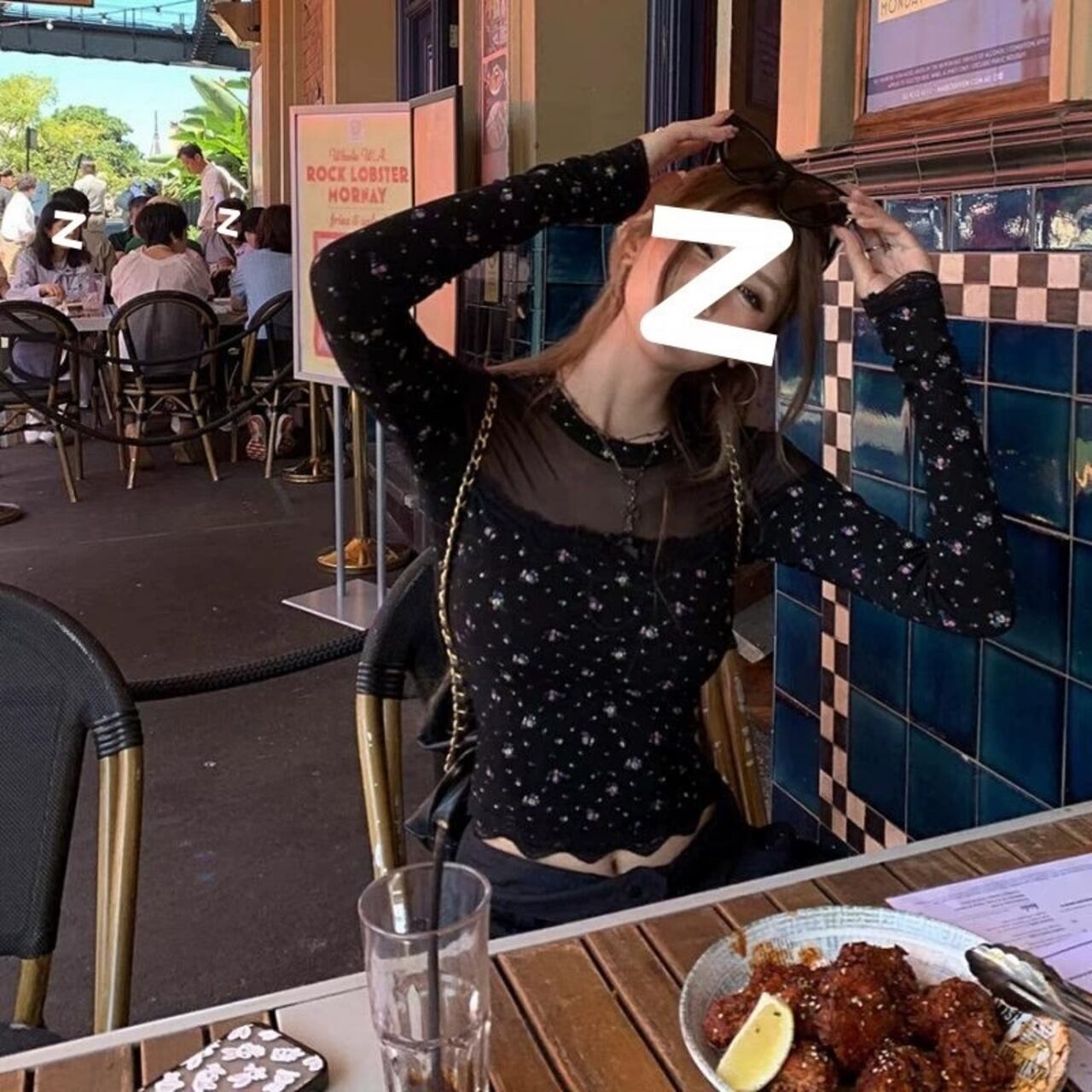 花柄メッシュクロップド長袖Tシャツ カットソー トップス 長袖Tシャツ クロップド シアーTシャツ 長袖Tシャツ レディース 10代 20代 30代 40代 y2k トリートコーデ アメカジコーデ 海外コーデ C660