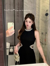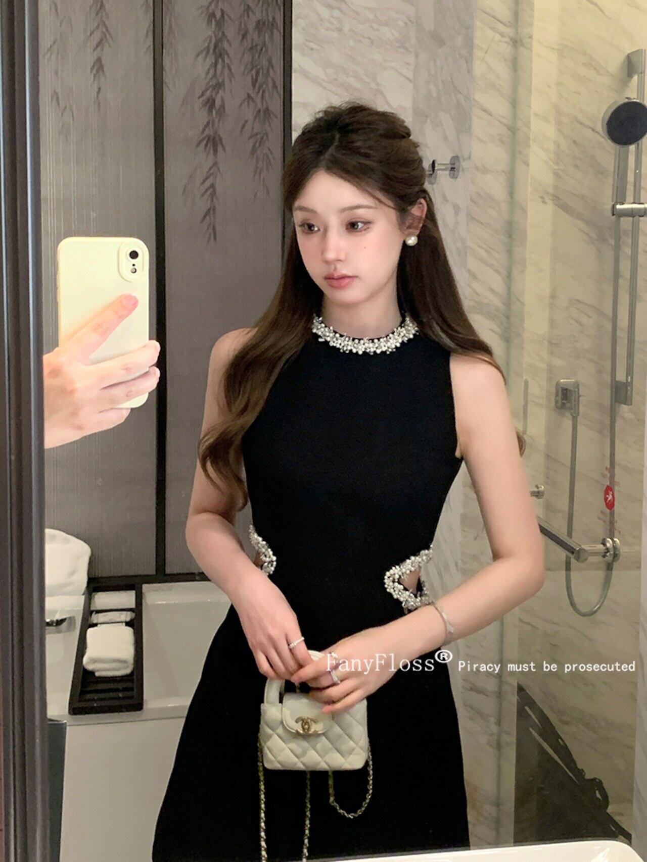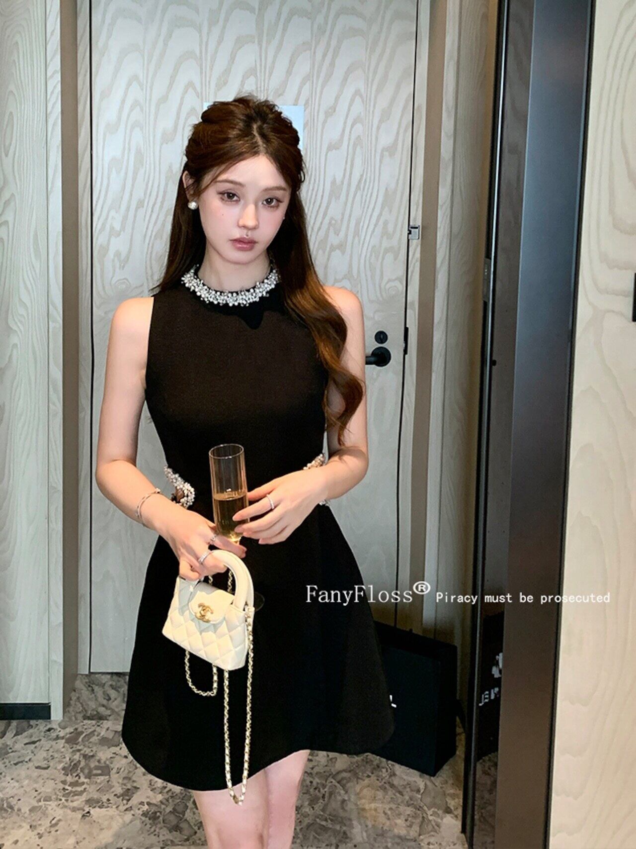 【高見え×美シルエット】ビジュー付きノースリーブワンピース ブラックドレス ミニワンピース ワンピース ドレス ノースリーブ レディース 上品 キラキラパールデザイン パーティー デート 二次会 結婚式 キャバドレス フレアドレス フォーマル きれいめ 20代 30代 40代 C501