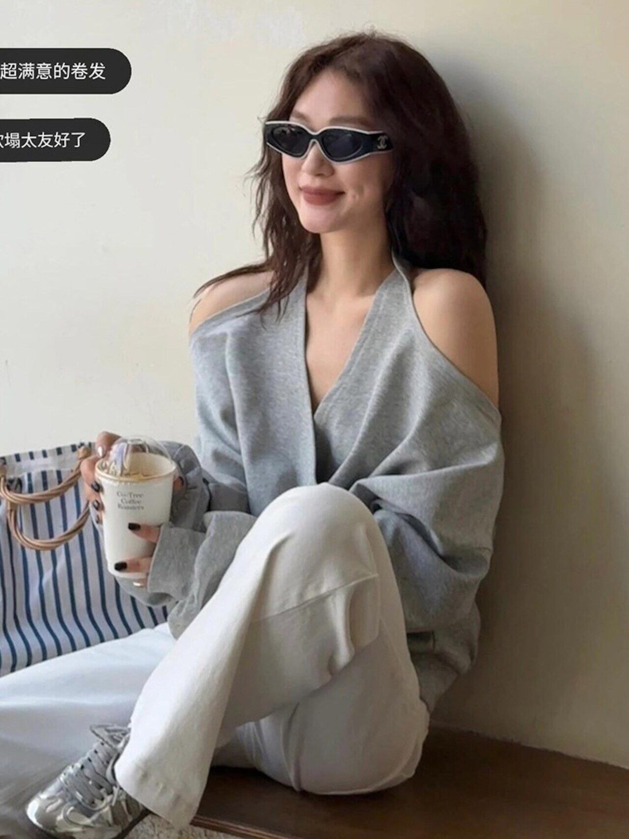 肩を落としたオフショルダーと深めのVネックデザインが、抜け感たっぷりで大人の色気を引き立てる一枚。