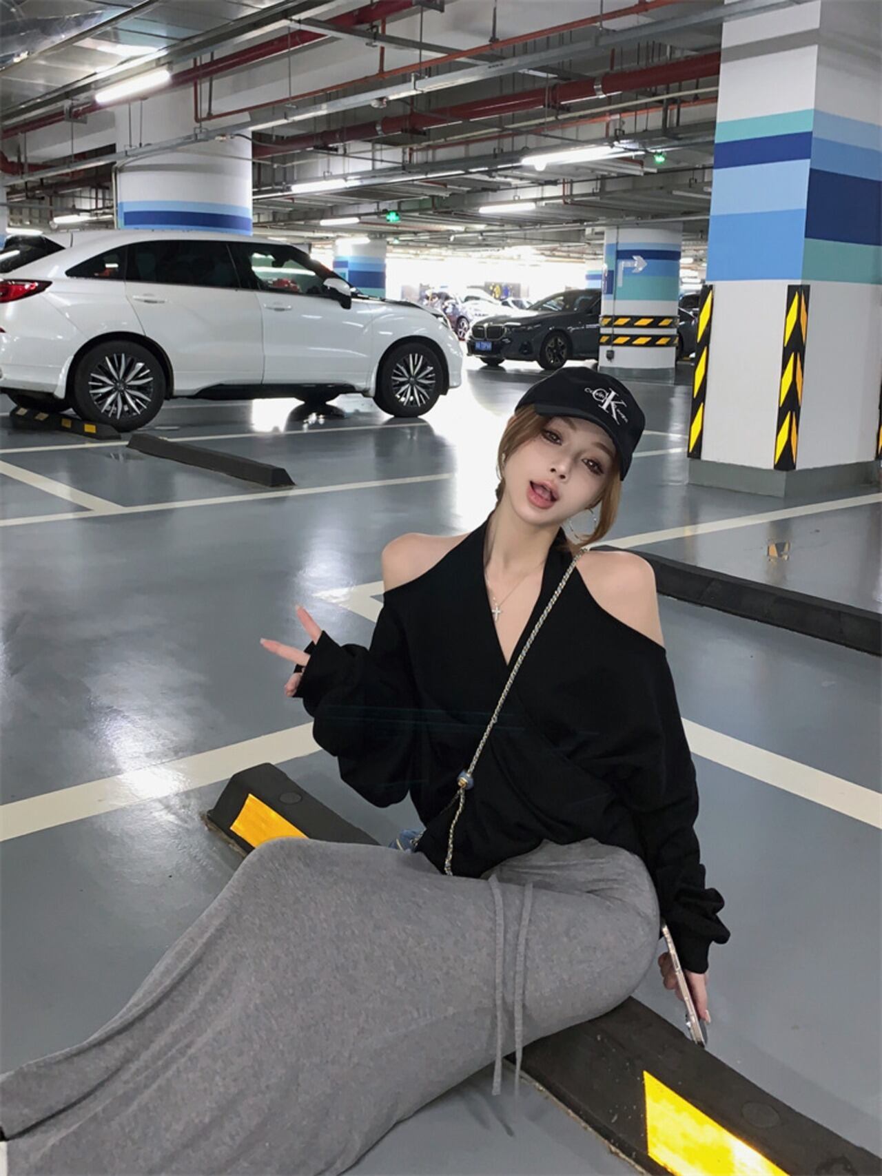 カシュクールカットアウトカットソー オフショルダー トップス レディース 長袖 セクシー Vネック ゆる カットソー 体型カバー 大人カジュアル アメカジコーデ ストリートコーデ 海外コーデ 春 秋 冬 カシュクール カットアウト C567
