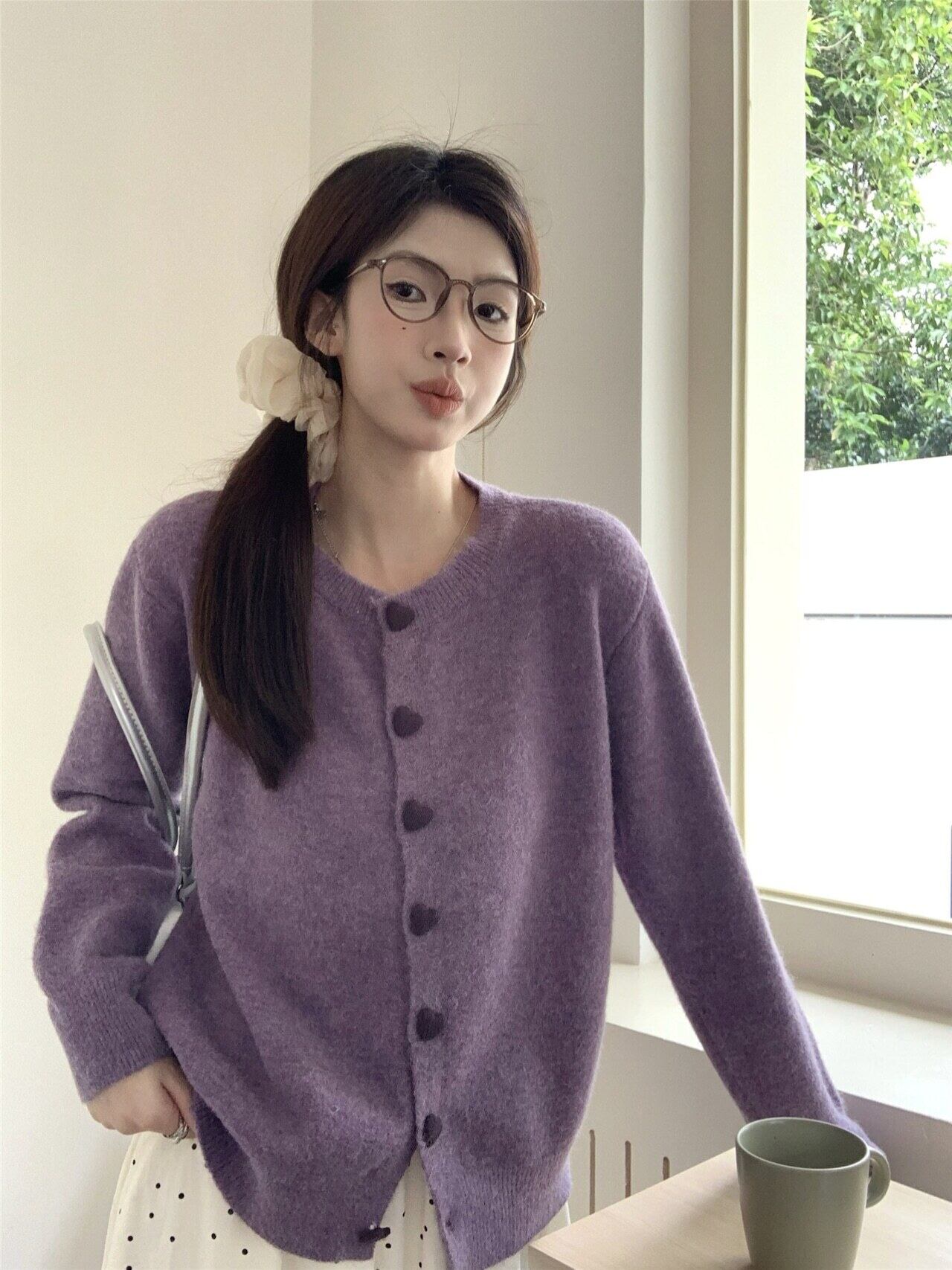 ふんわり柔らかく、着るだけでガーリーな雰囲気を演出してくれる「ハートボタン付きカーディガン」が登場!
