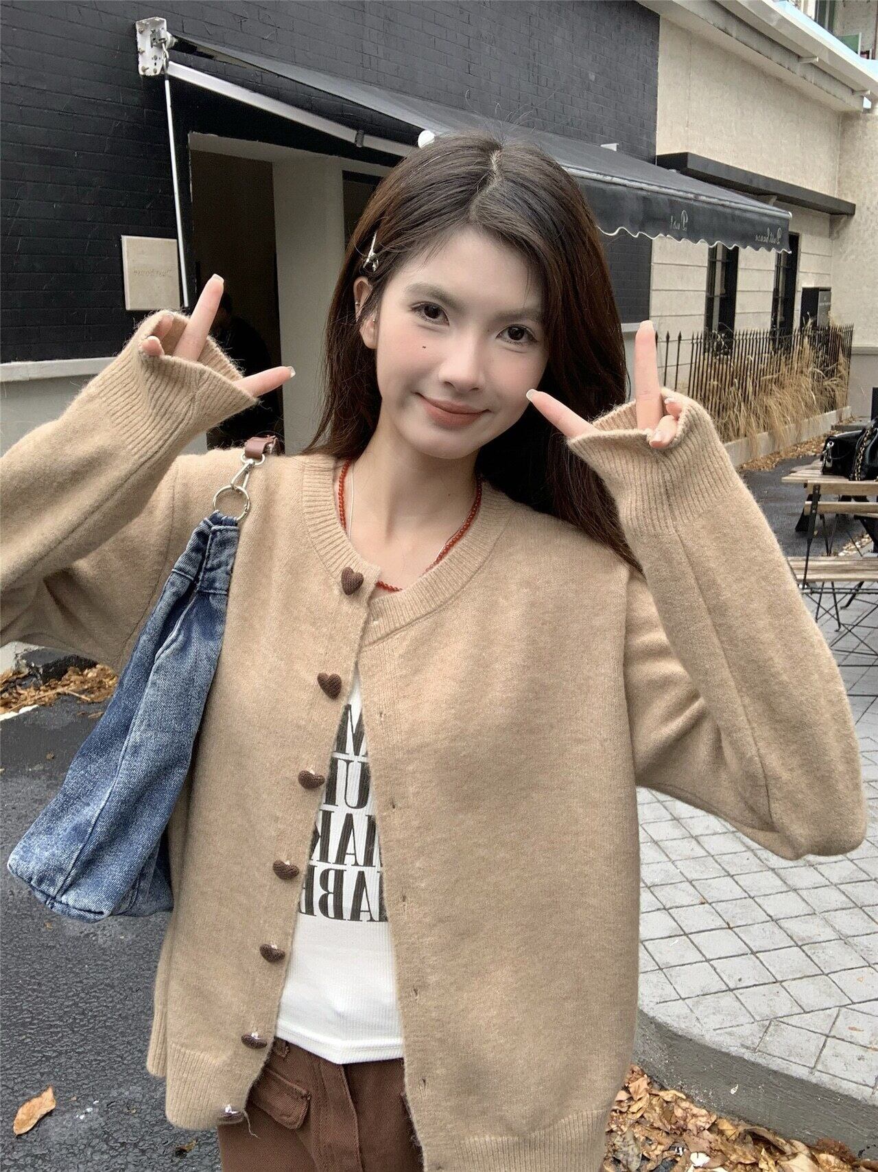 ハートボタンニットカーディガン ニットカーディガン ニット カーディガン セーター レディース 長袖 秋冬 羽織り 大人可愛い 韓国風 ガーリーコーデ C596