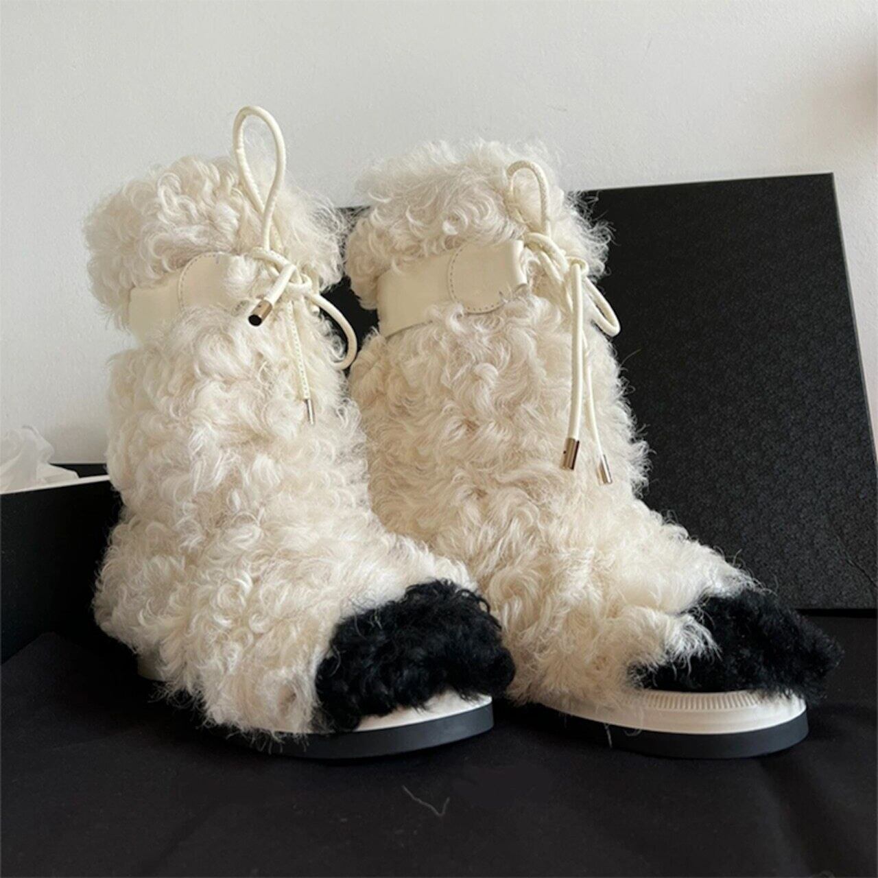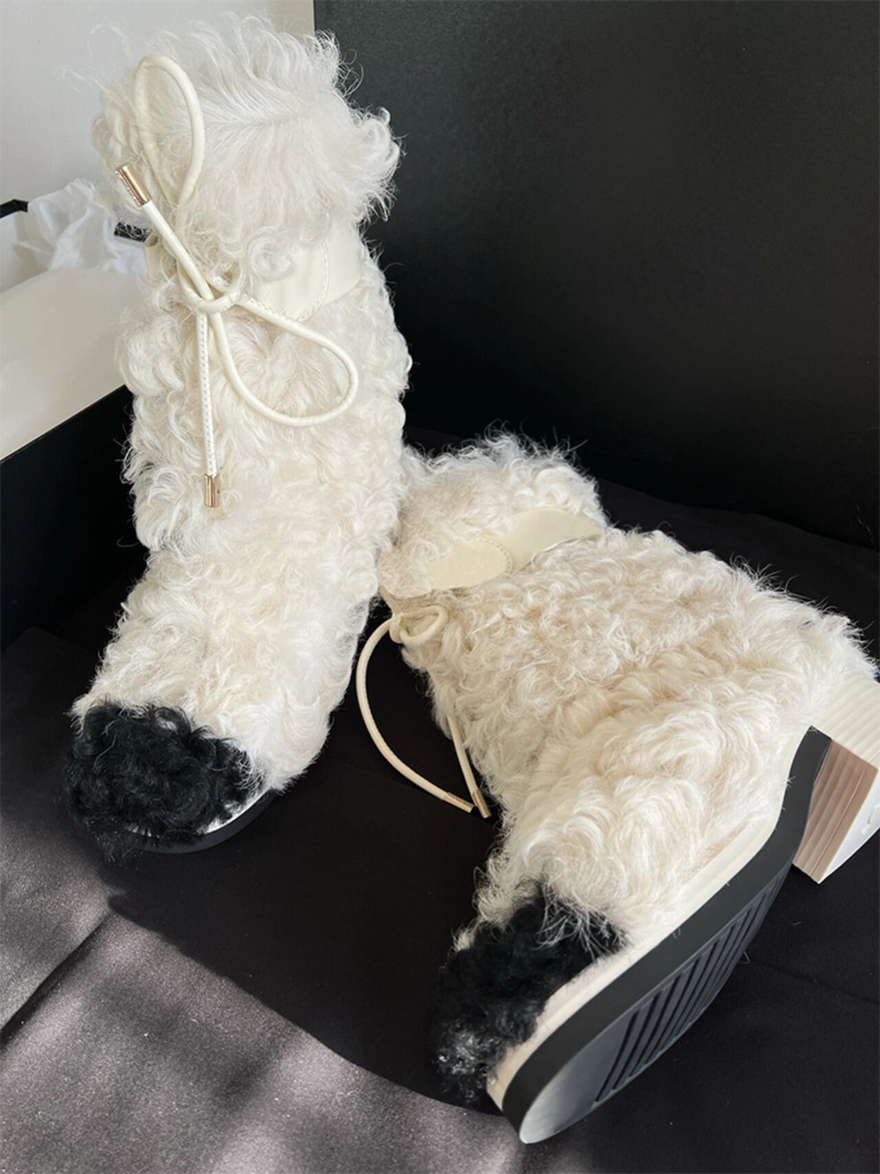 ふわもこ ファーブーツ レディース 秋冬 厚底 ショートブーツ ムートン風 ボアブーツ パンダ風デザイン 防寒 あったか 靴 個性派 おしゃれ 可愛い モコモコ C559
