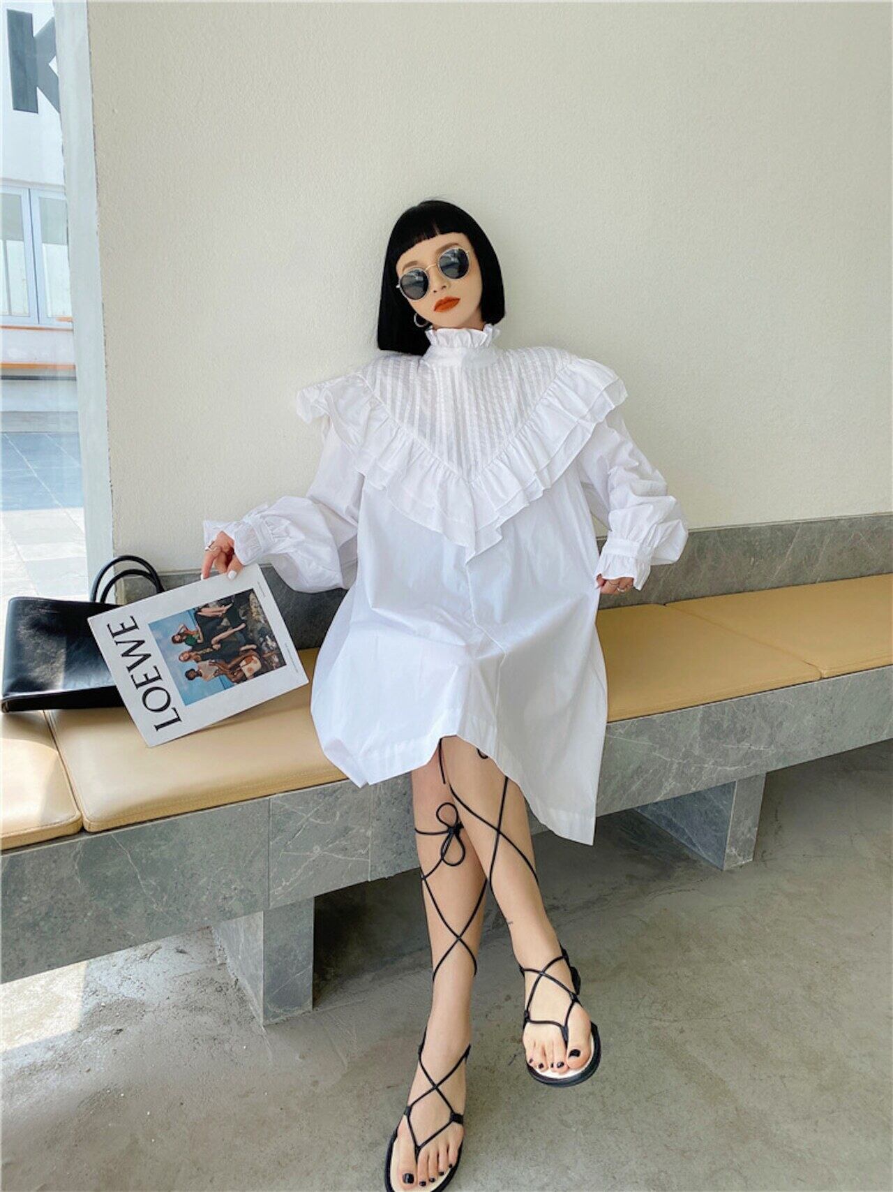 フリルシャツワンピース シャツワンピース レディース 高見えワンピース 1枚でキマるワンピース おしゃれ フリル ワンピース 長袖 モード系 ガーリーコーデ 春 夏 秋 カジュアル 高見え ゆったり 体型カバー C513
