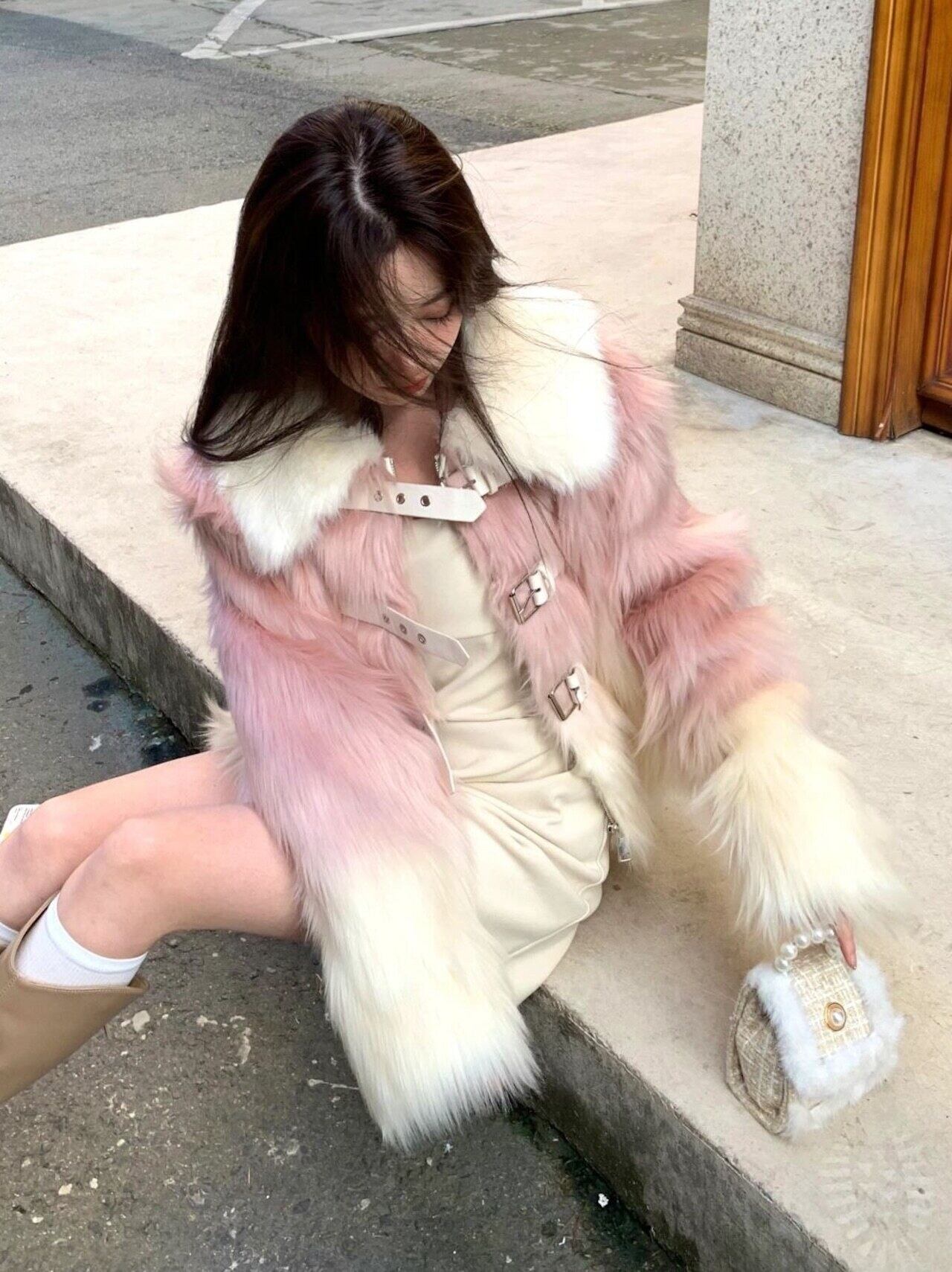 グラデーションピンクフェイクファーコート フェイクファーコート ピンク×ホワイトグラデーション アウター 冬 フェイクファー レディース コート ピンクアウター グラデーション 冬服 海外ファッション ガーリー 高見え オシャレアウター Y2K C433