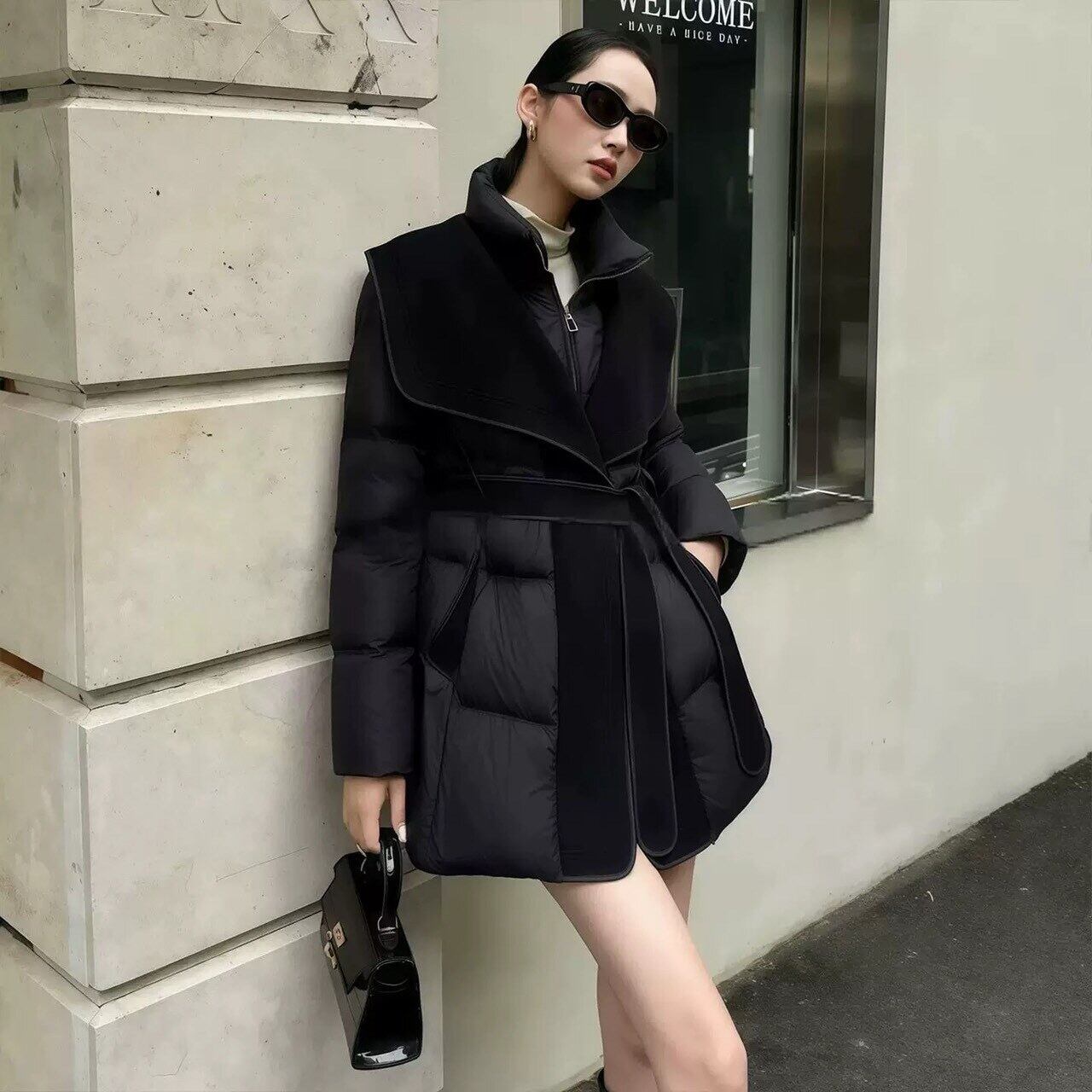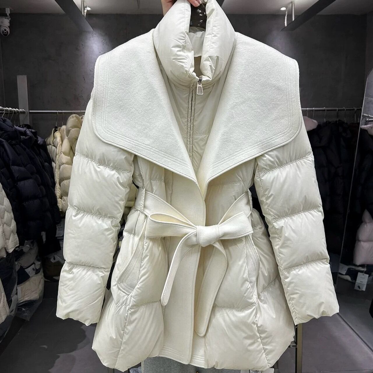 なのに着膨れせず、ウエストマークでスタイルアップも叶うデザイン。