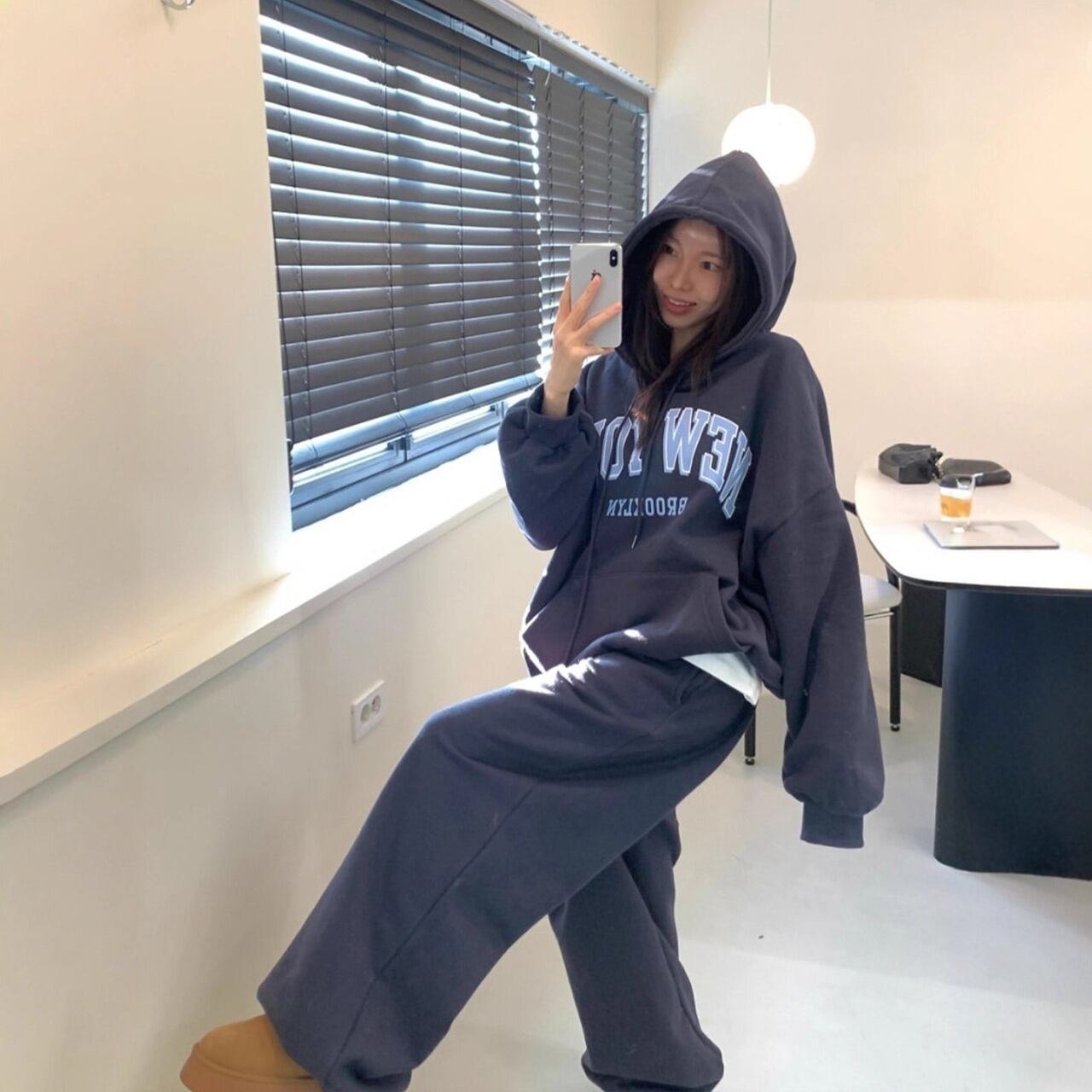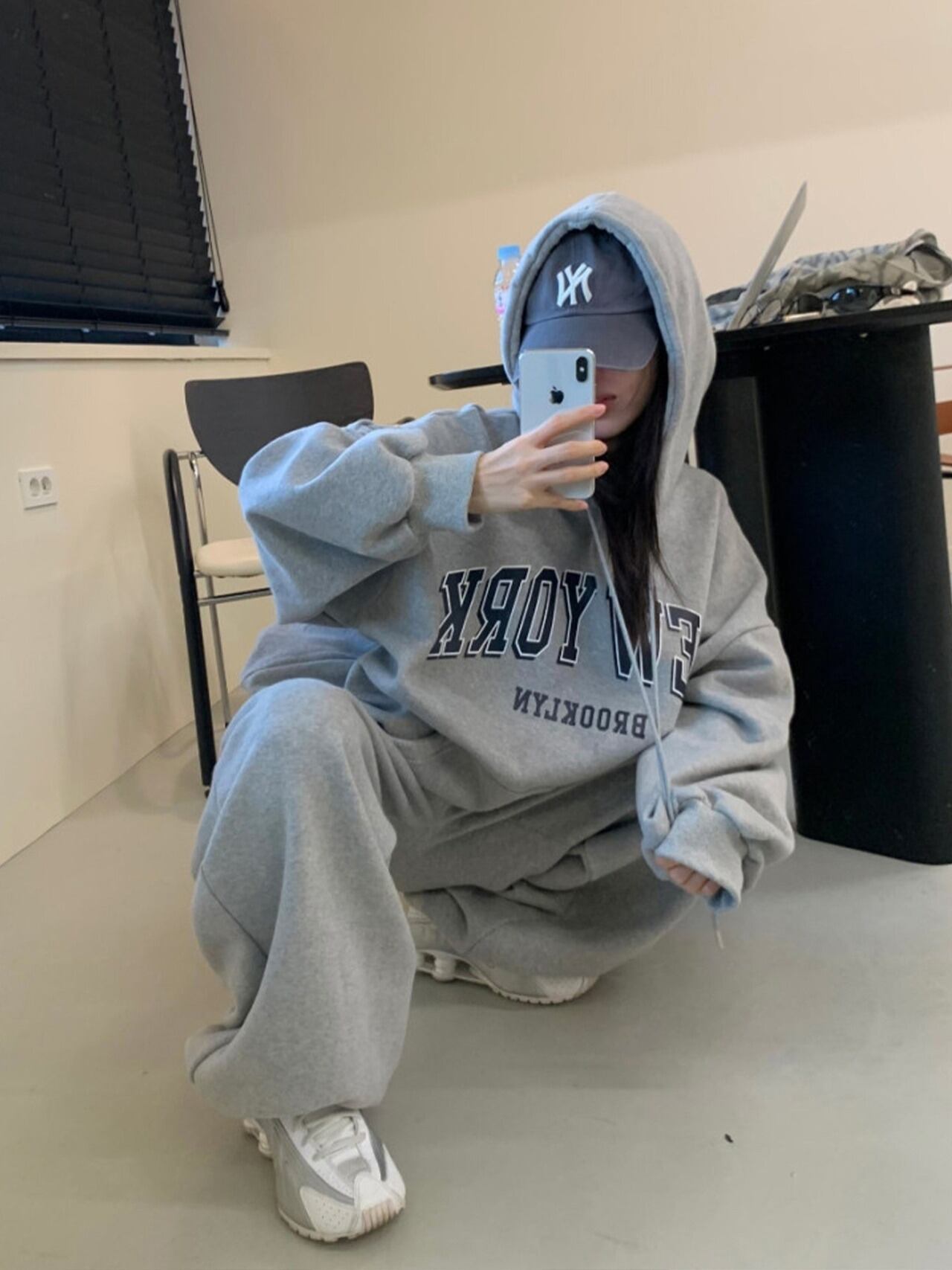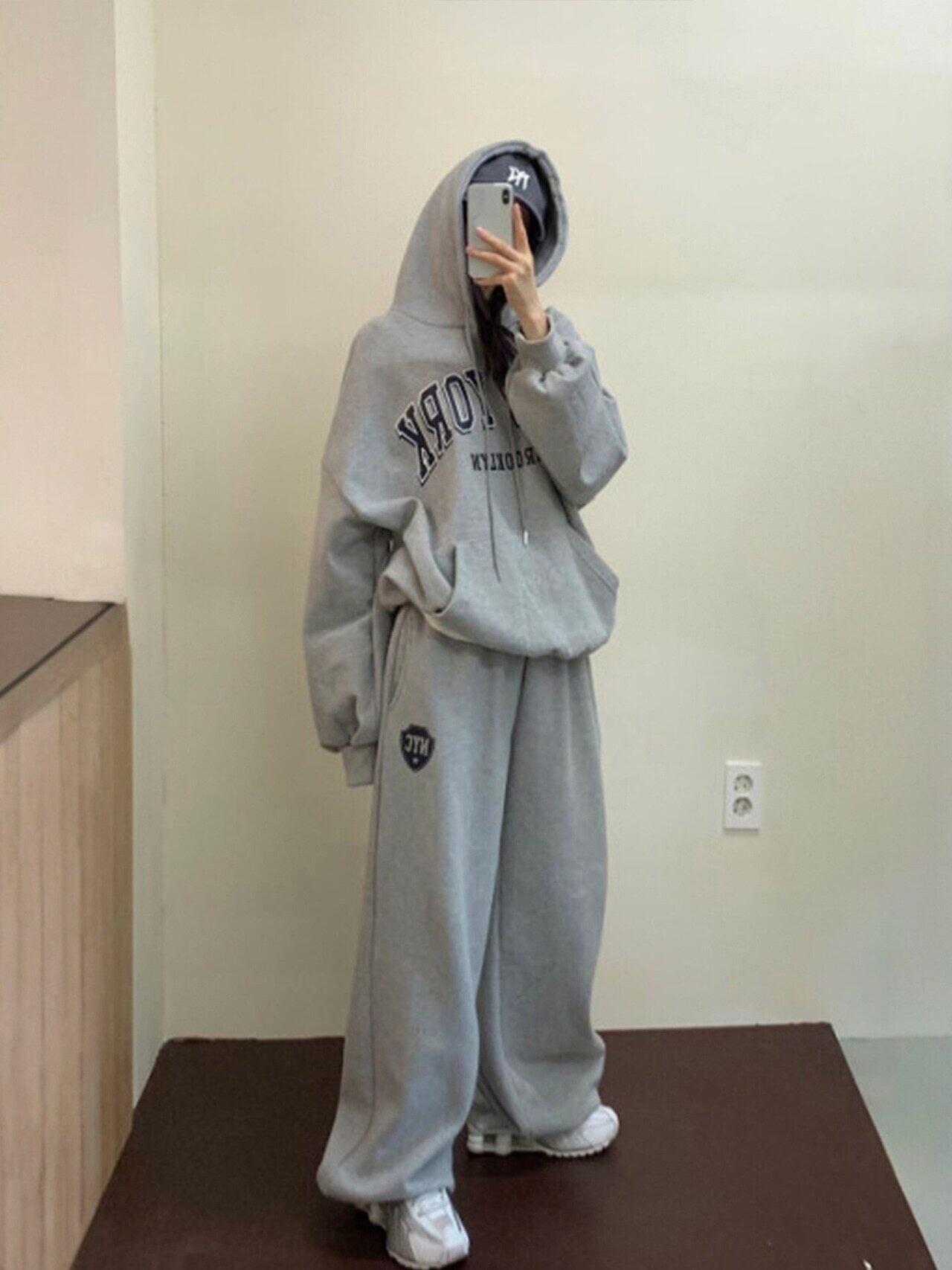 【セットアップ】NEW YORK ロゴセットアップ レディース スウェット 上下セット ビッグシルエット パーカー&ワイドパンツ カジュアルストリート 海外ストリート風 秋冬 C466