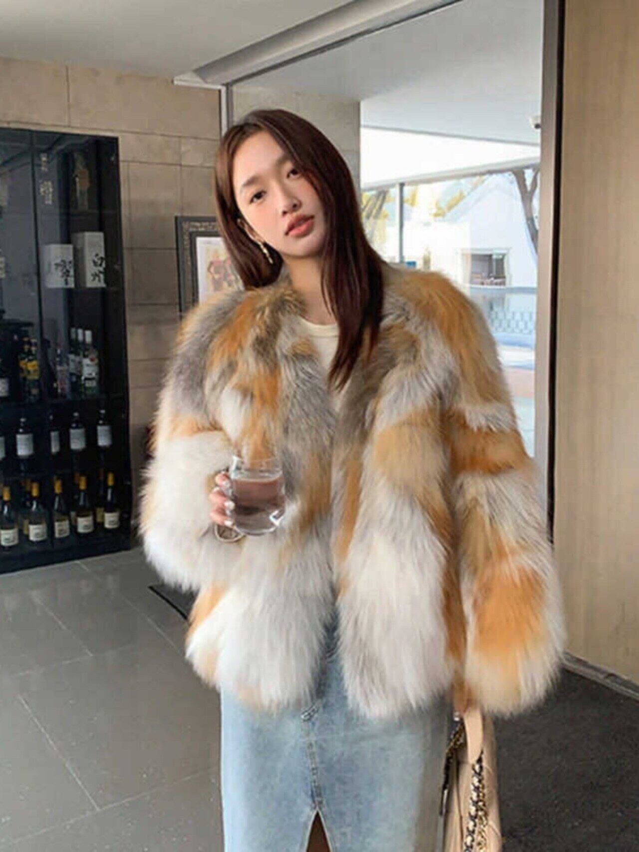 エコファージャケット ノーカラーファーコート ふわふわ ボリューム感 フェイクファーアウター 秋冬 レディースコート ファーコート ファージャケット アウター C467