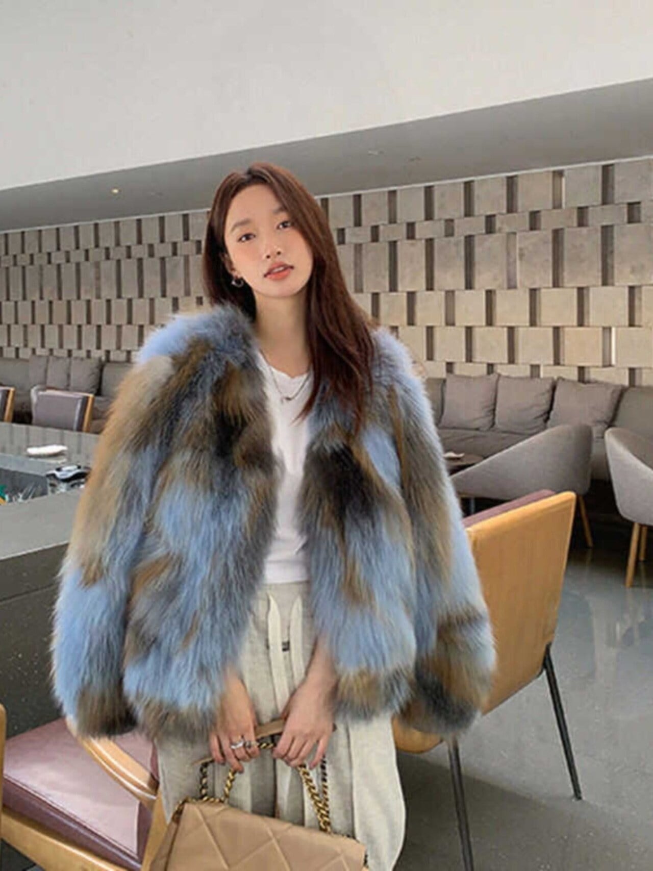ふわふわとした高密度フェイクファーを使用し、羽織るだけで華やかさと高級感を演出します。