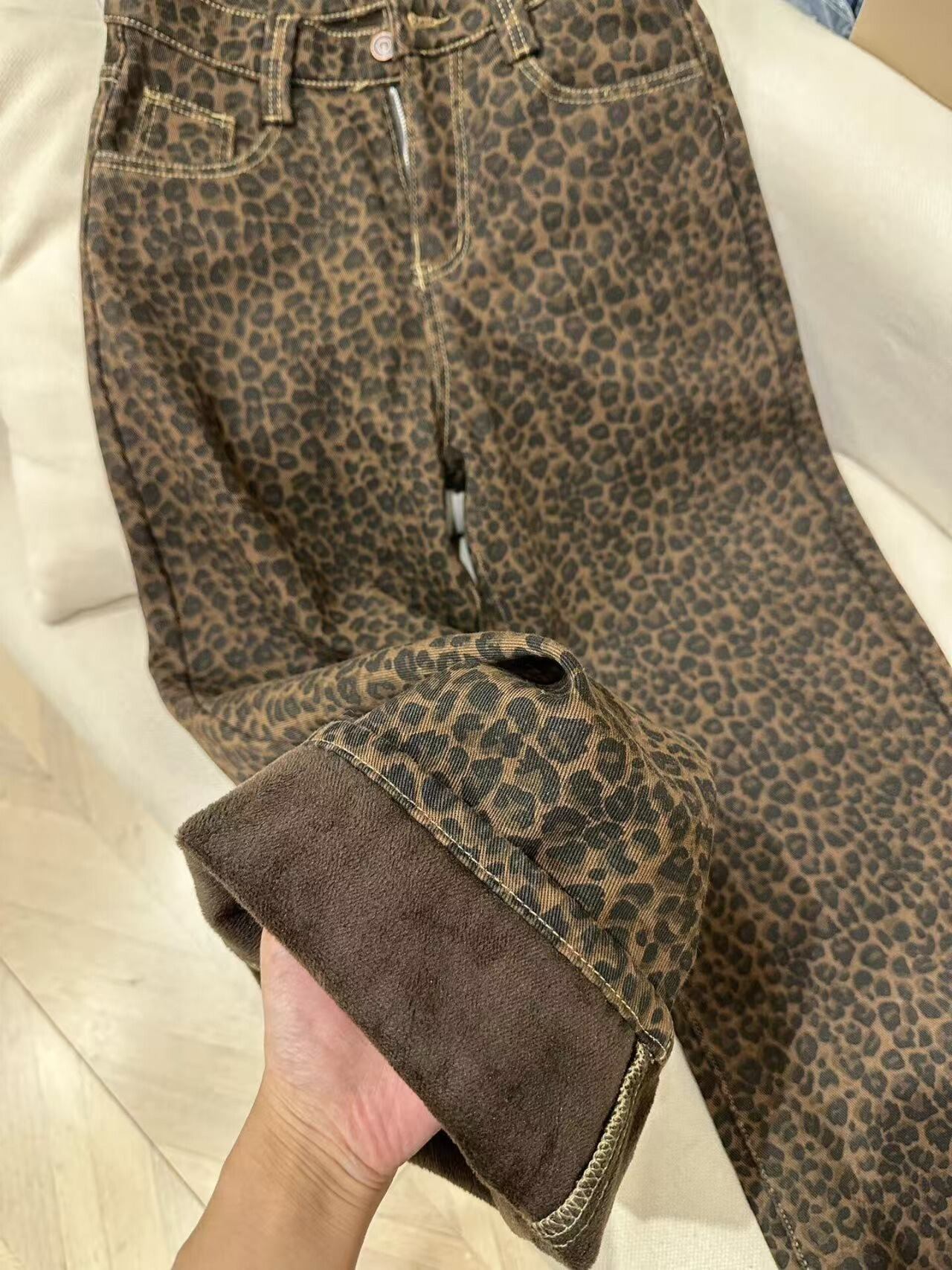 レオパード柄ワイドパンツ 裏起毛 レディース 秋冬 あったか ゆったり 秋冬パンツ 裏起毛パンツ レオパード柄 ヒョウ柄 韓国ファッション ワイドパンツ デニム風 / レディース ゆったりパンツ 美脚 体型カバー 防寒 あったかパンツ カジュアル きれいめ 高見え 旅行コーデ C376