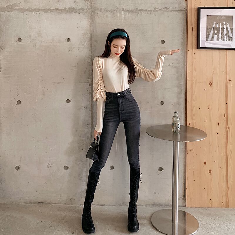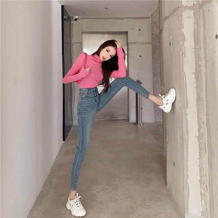 スキニージーンズ ジーンズ デニム 美脚 ストレートデニム ハイウエスト 2カラー b4