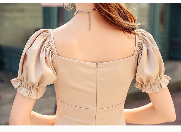 プリーツパフスリーブ袖で二の腕もカバー出来るのも嬉しい点です。