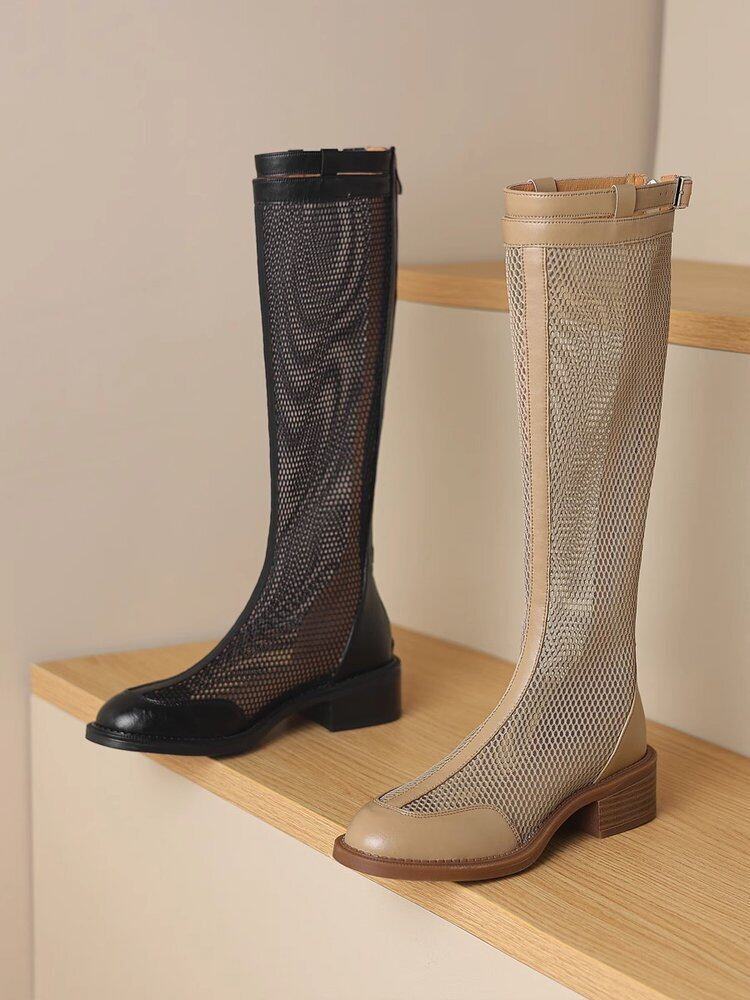 メッシュ生地サマーブーツ メッシュブーツ レディース ロングブーツ ブーツ ミドルブーツ 美脚 サマーブーツ レディーズシューズ 2カラー 2パターン b199