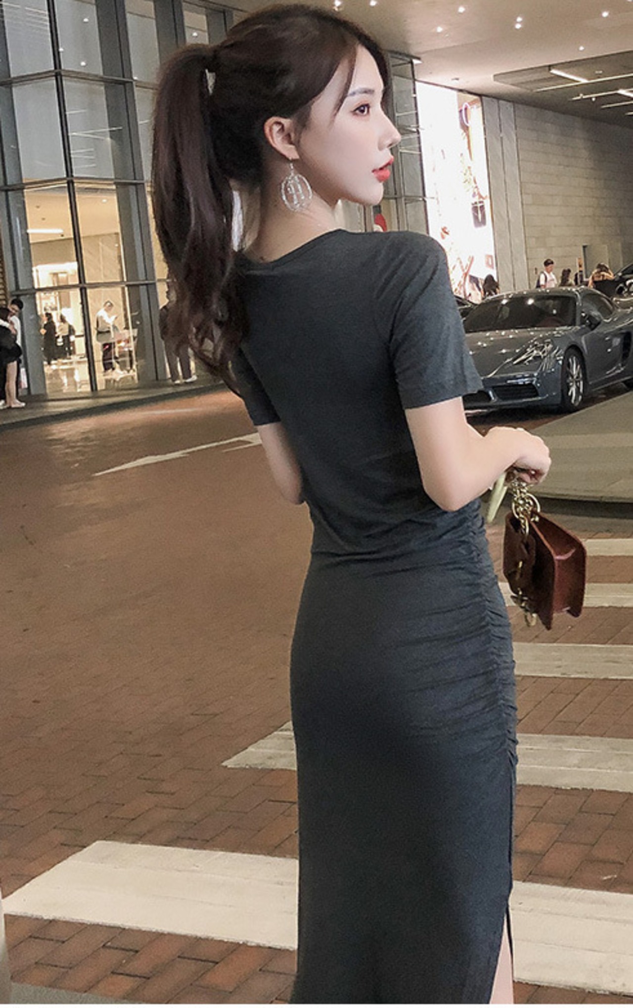 サイドスリットとシャイニング加工が可愛いタイトワンピース
