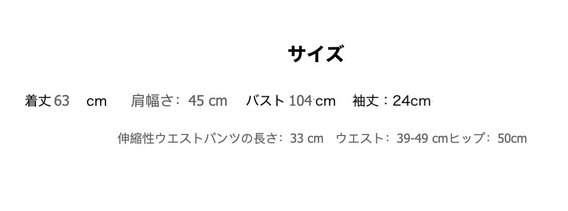着丈:63cm 肩幅:45 cm バスト:104cm 袖丈:24cm
