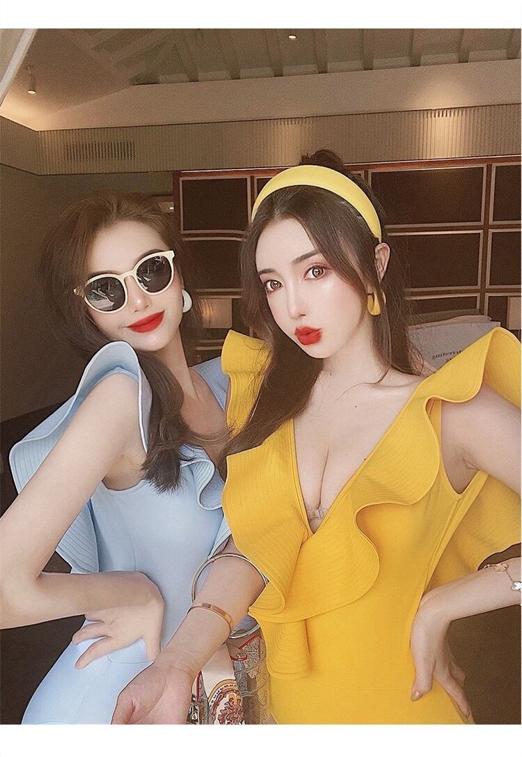 深めのVネックとフリルが可愛いモノキニビキニ