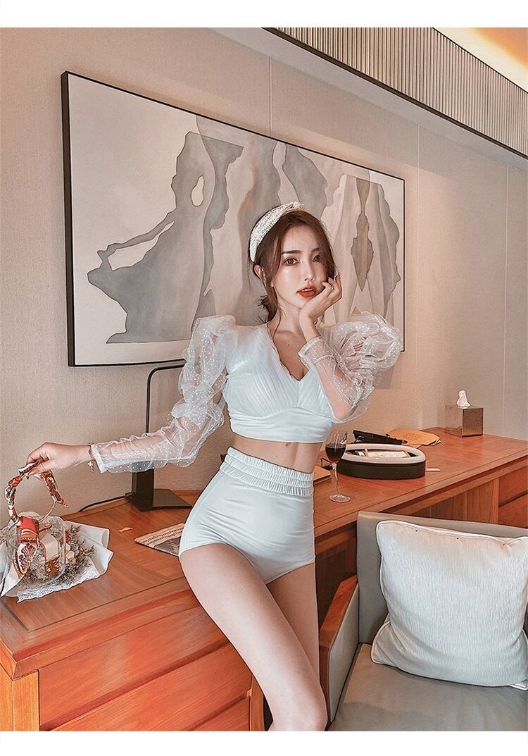 長袖シフォンにドット柄が可愛いバブルスリーブ袖のビキニです。