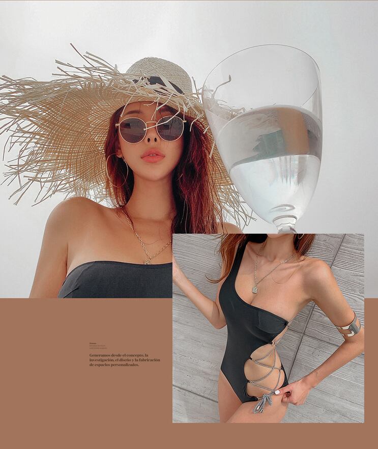 サイドオープンクロスがセクシーなワンショルダーモノキニビキニです。
