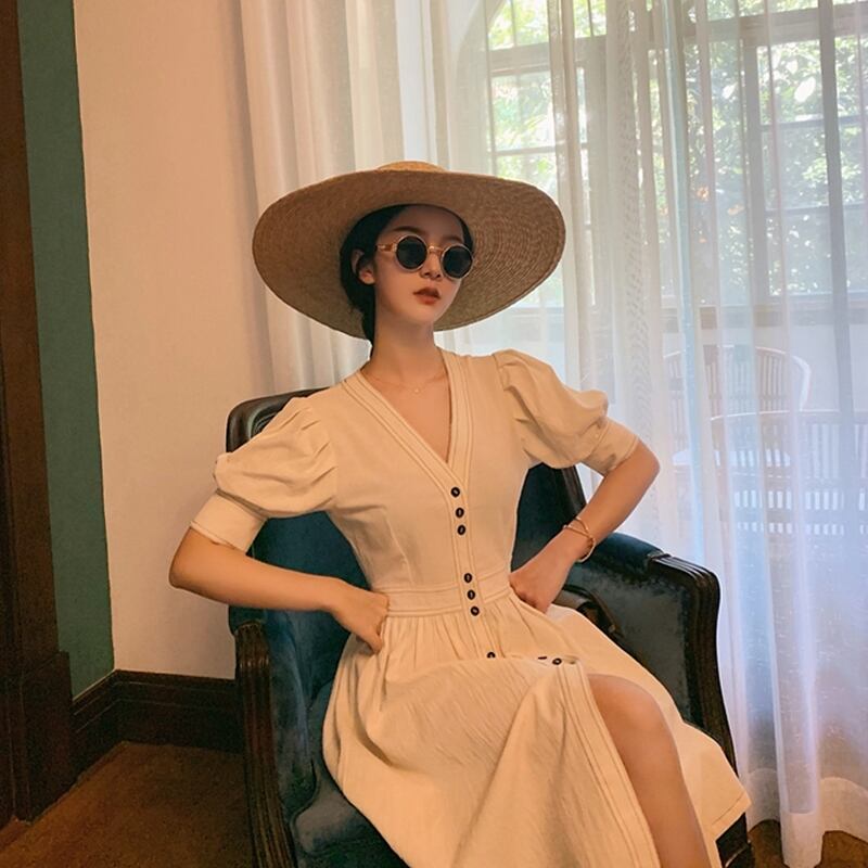レトロな雰囲気が可愛いパフスリーブワンピースです。