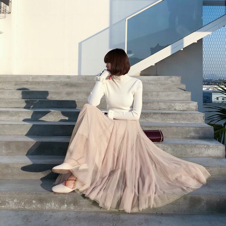 Aラインチュールスカート フレアスカート チュチュスカート チュールスカート スカート ロングスカート レディース 10カラー b324