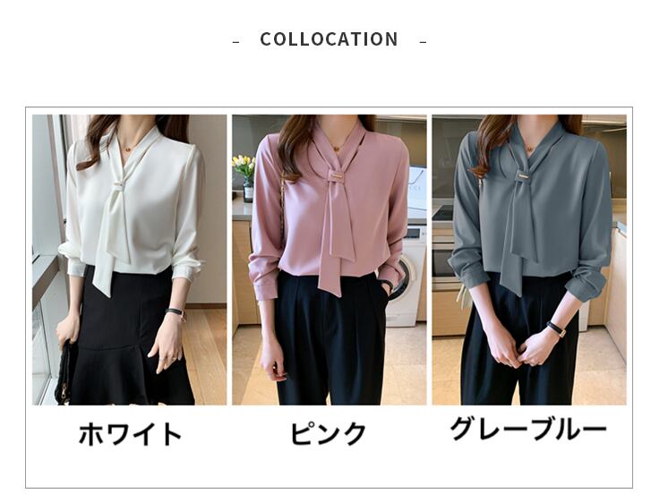 ボウタイ サテンブラウス ブラウス シャツ お仕事コーデ 長袖シャツ3カラー b542