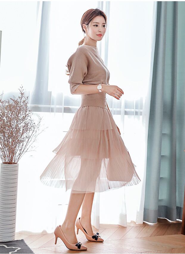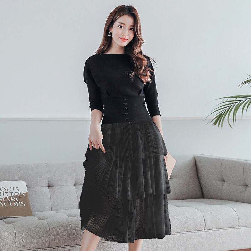 【セットアップ】ティアードスカート+パフスリーブセーター 2ピース 3カラー b465