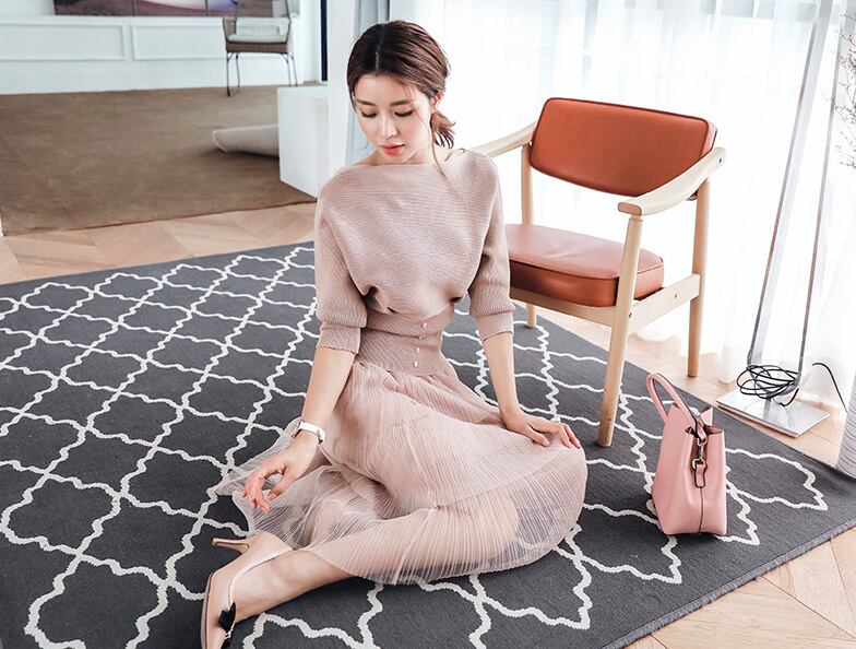 トップスはスリムで、スカートはボリューミーなのでメリハリがありとてもエレガントなアイテム