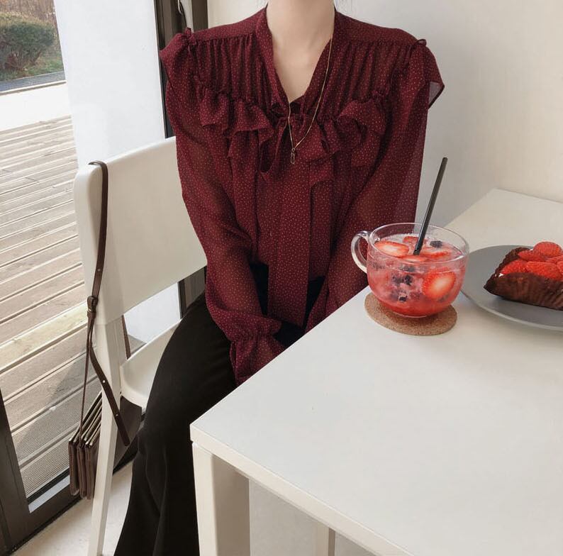 ドット柄✴︎シースルースリーブ シフォンブラウス 2カラー b474