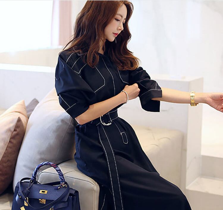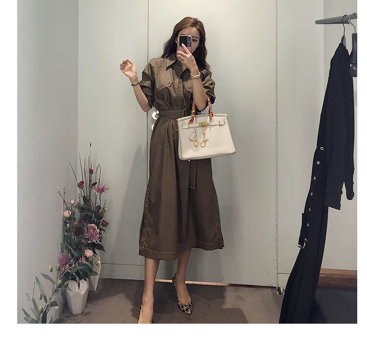 シャツワンピース 長袖 ワンピース レディース オフィス お仕事コーデ 2カラー b107