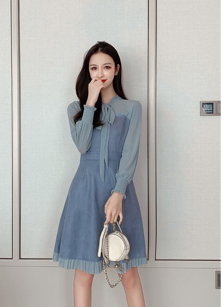 Aライン✴︎リボンワンピース 2カラー b460