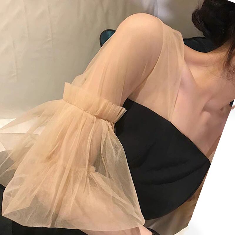 肩から袖にかけてレース切り替えになってるのがエレガントで大人セクシーな1枚。