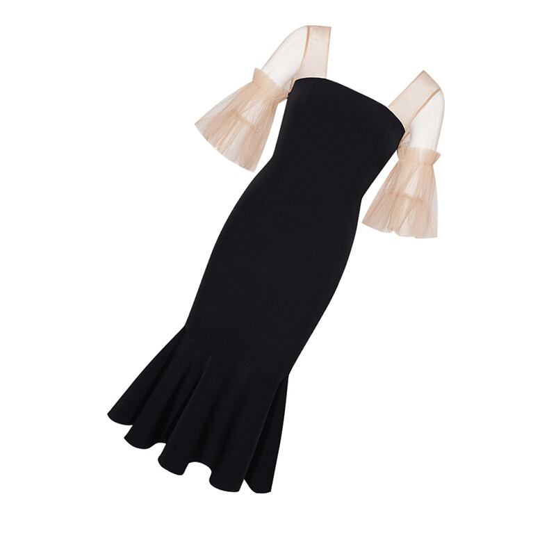 マーメイド フリル レース切替 ミディ ワンピース ドレス b416