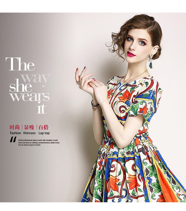 ペイント風 フラワー半袖ワンピース プリーツスカート b438