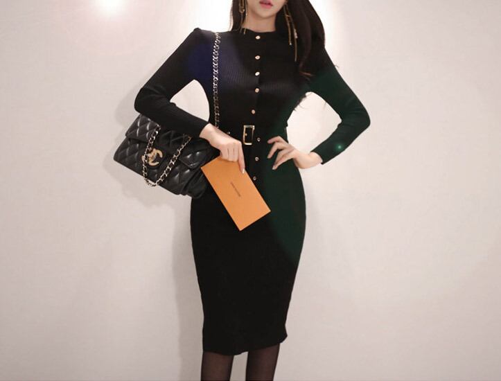 タイトなウエストベルト付き✴︎セーターニットワンピース