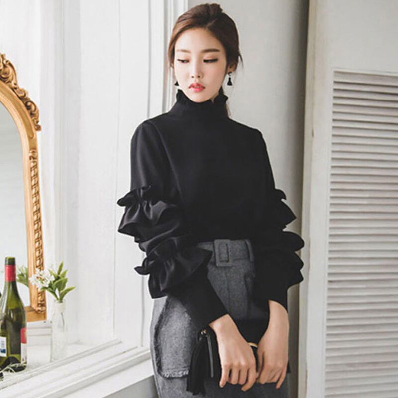 バブルスリーブ ハイネック 長袖 ブラウス b516