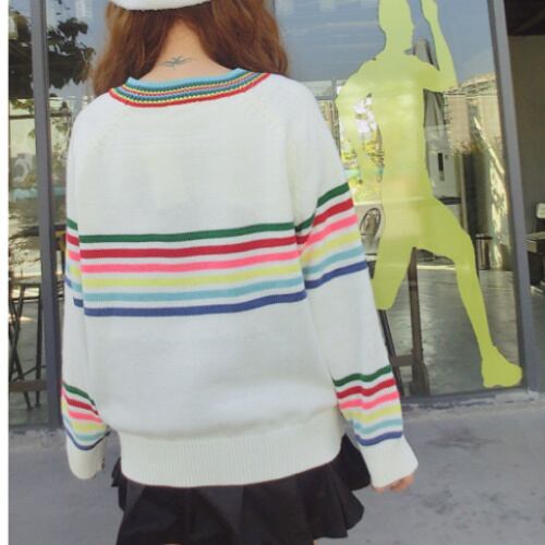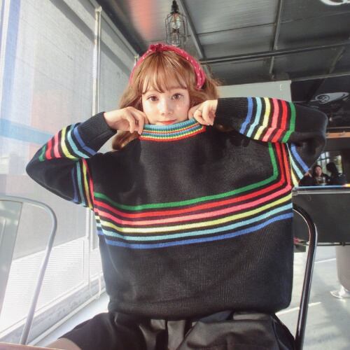 レインボーストライプ 長袖セーター 韓国 ニット A1747