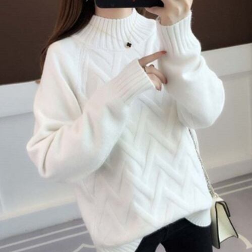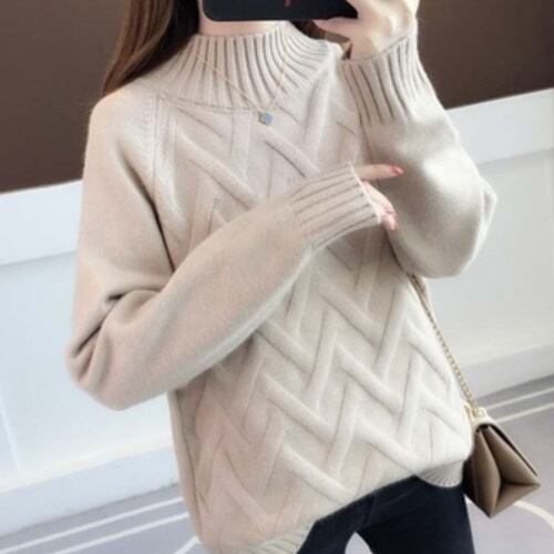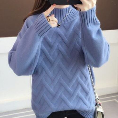 秋冬 オシャレ 立ち襟 純色 暖かい 着痩せ ニットセーター A1768