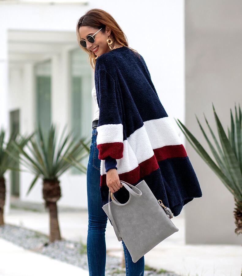 大きい フェイクファー ロング カーディガン 長袖 カジュアル 可愛い 体型カバー A19
