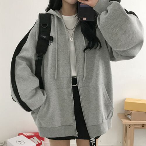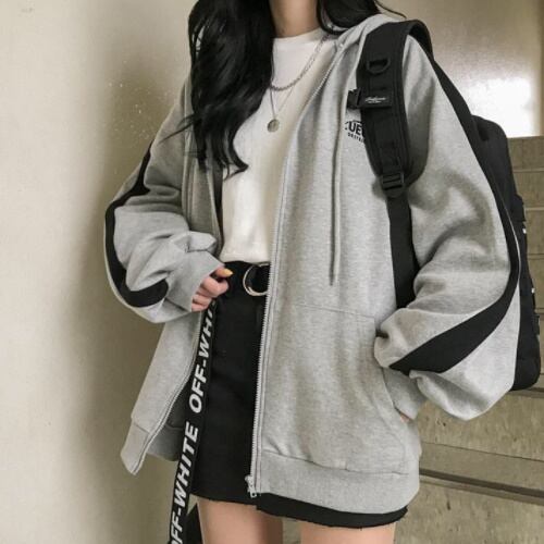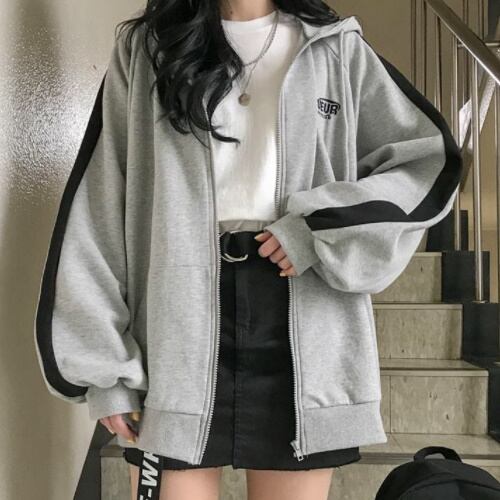 ライン ロゴ入り ジップ スウェット パーカー フード付き ボリューム袖 オーバーサイズ A1788