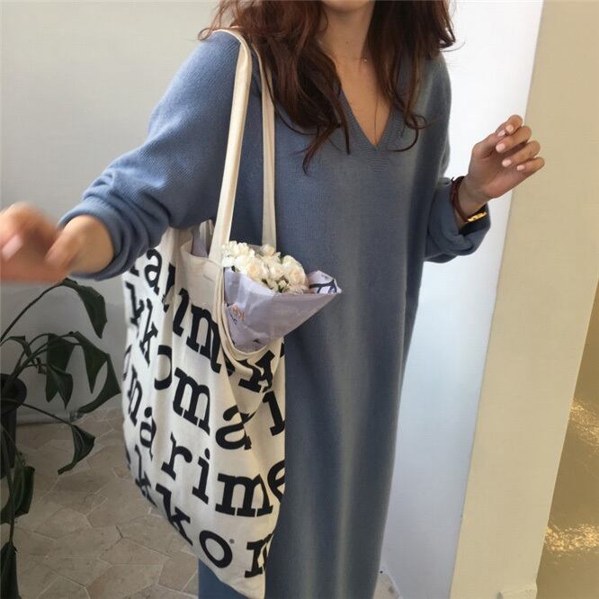 秋冬 Vネック 暖かい 着やせ オリジナル ニットセーターロングワンピース A1801