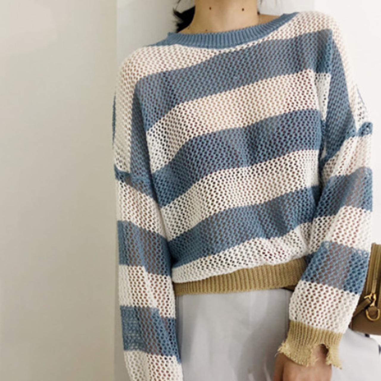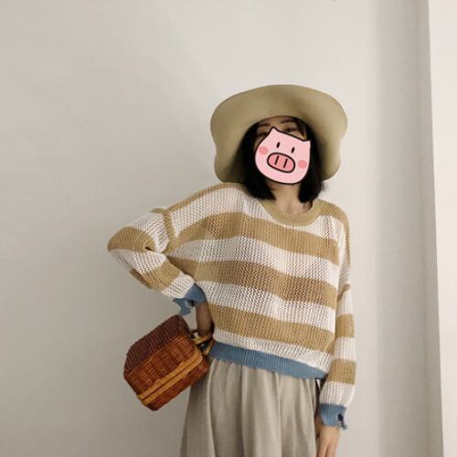 ストライプ ニット セーター ルーズ プルオーバーカジュアル A1804