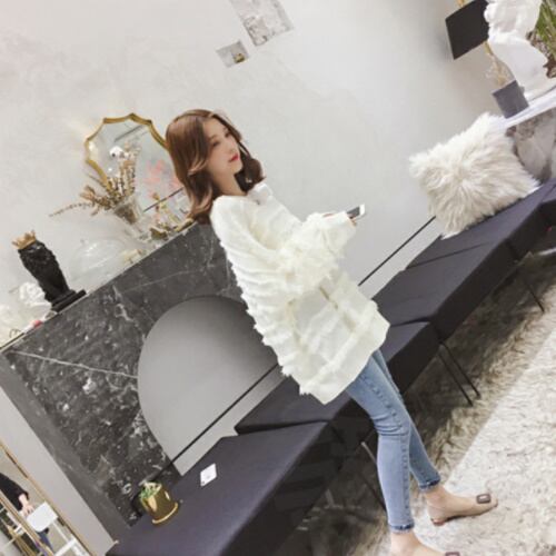 秋冬 オシャレ 着やせ セーター ニットトップス フリル A1842