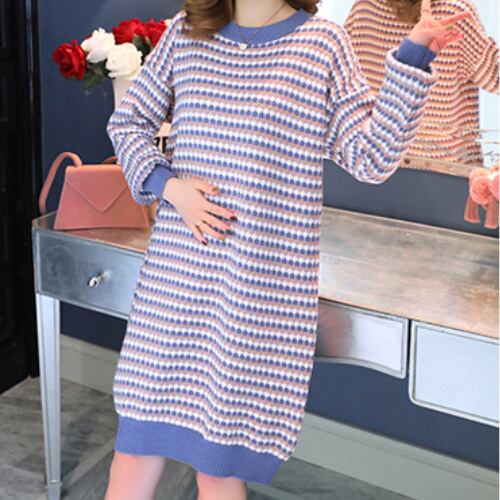 秋冬 レディース 暖かい ボーダー柄 着やせ ニット セーター 長袖 チュニック A1843