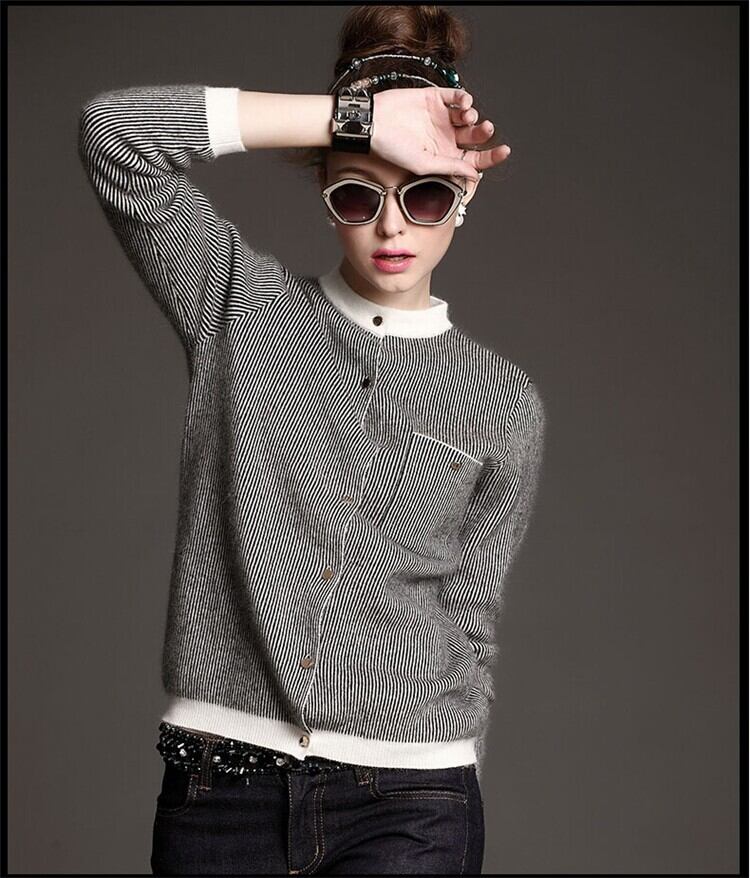 カシミヤ カーディガン ニット セーター ストライプ レディース A116